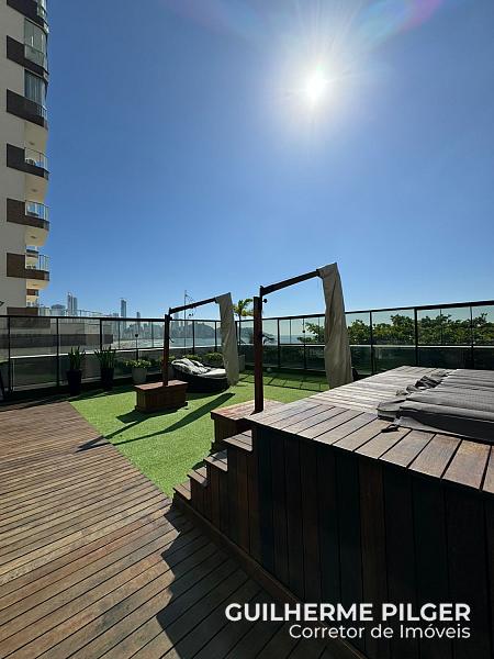 Apartamento diferenciado no Edifício Austral mobiliado no centro de Balneário Camboriú, com amplo terraço e jacuzzi de frente para o mar, 4 suítes + dependência, sala de estar, sala de jantar, cozinha, área de serviço e 2 vagas.