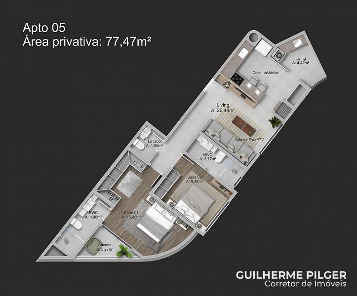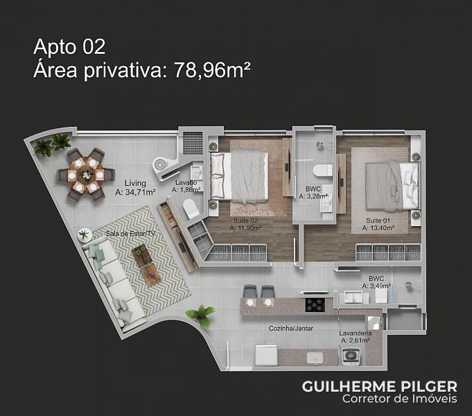 Apartamento no Edifício Brava Coast Residence na Praia Brava em Itajaí, com 100m² privativos, 3 dormitórios sendo 1 suíte, 02 vagas de garagem, churrasqueira.