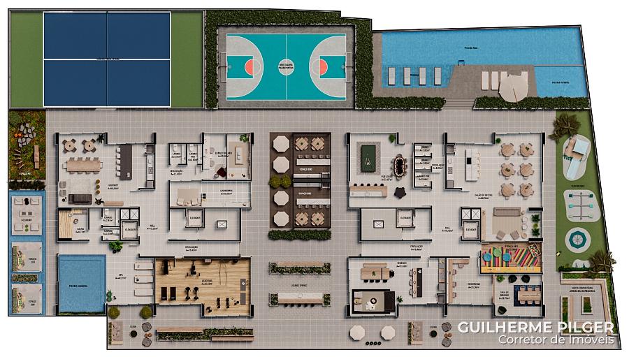 Apartamento no Brava Valley Home Club na Praia Brava em Itajaí, com 84,24m², 2 suítes, living integrado com sala de estar, sala de jantar e cozinha, sacada com espaço gourmet e churrasqueira, 1 vaga de garagem.