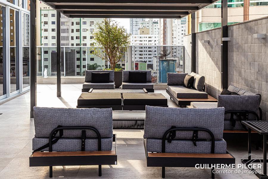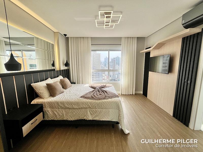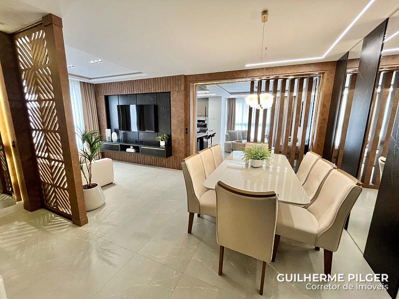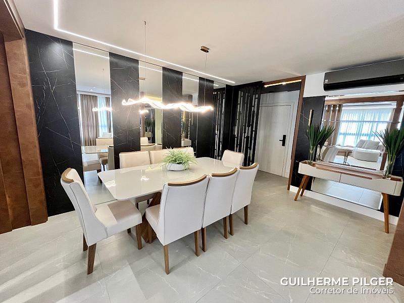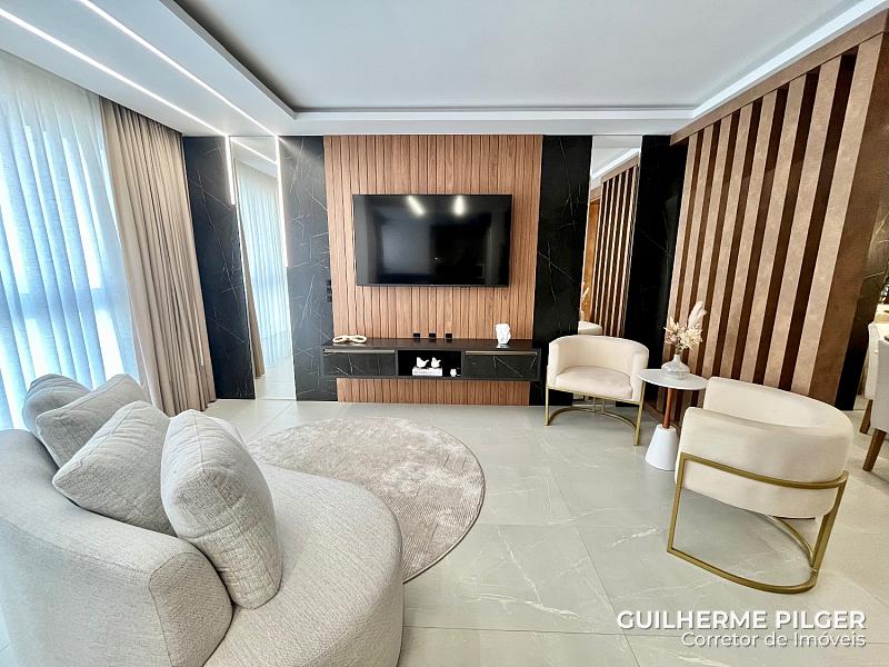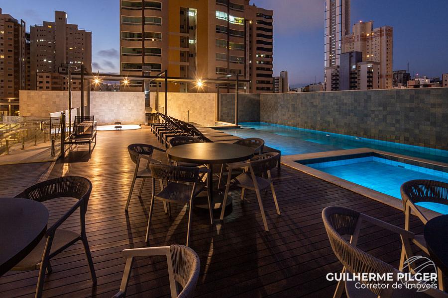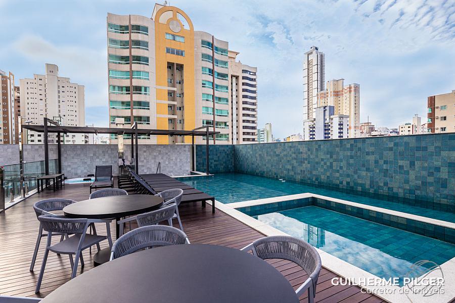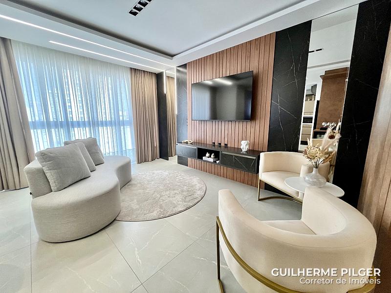 Apartamento no Edifício Città di Vinci no centro de Balneário Camboriú, mobiliado, equipado e decorado, pronto para morar, com 143m², 3 suítes, amplo living com sala de estar, sala de jantar, cozinha americana, sala de tv, home office, área de serviço, hall de entrada e 3 vagas.