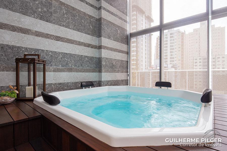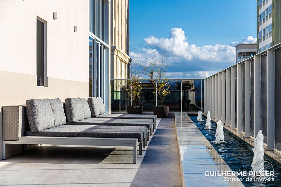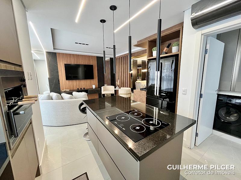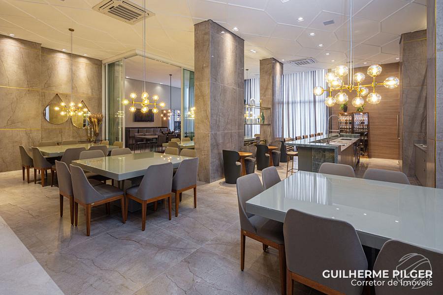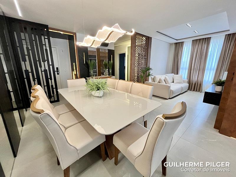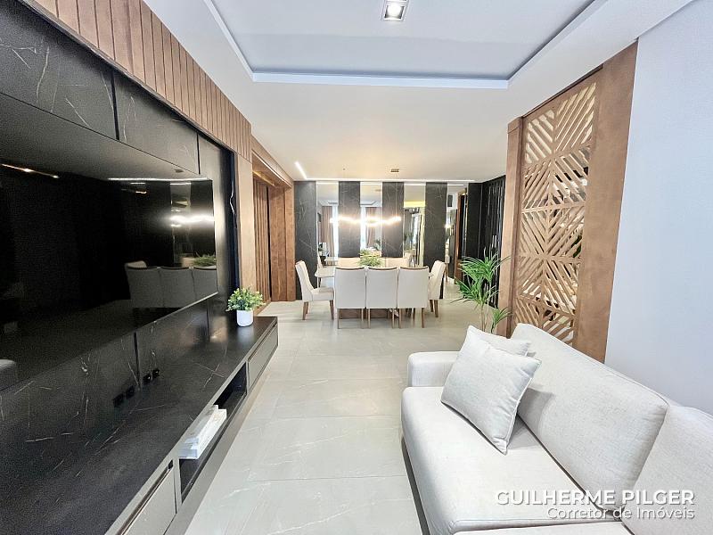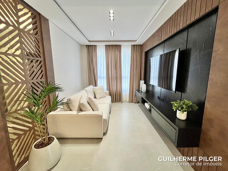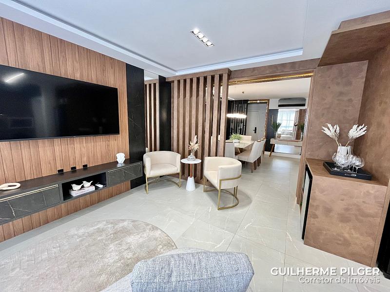 Apartamento no Edifício Città di Vinci no centro de Balneário Camboriú, mobiliado, equipado e decorado, pronto para morar, com 143m², 3 suítes, amplo living com sala de estar, sala de jantar, cozinha americana, sala de tv, home office, área de serviço, hall de entrada e 3 vagas.