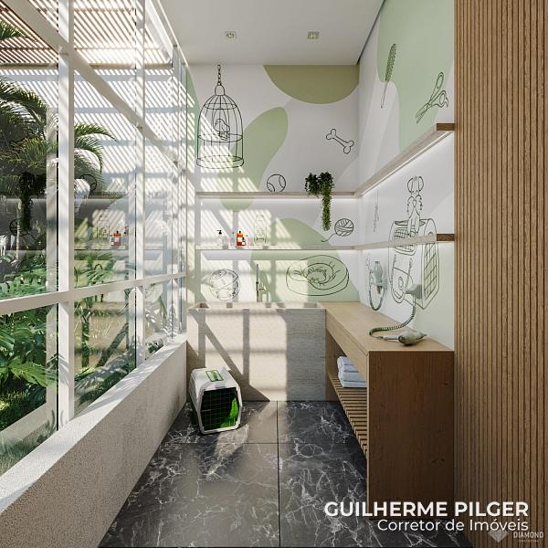 • Amplo living com espaço gourmet e churrasqueira a carvão