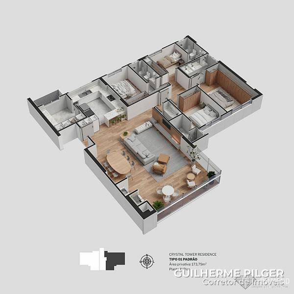 Apartamento no Edifício Diamond Crystal Tower em Balneário Camboriú, com 175m², 04 suítes, 03 vagas de garagem, amplo living com espaço gourmet e churrasqueira a carvão.