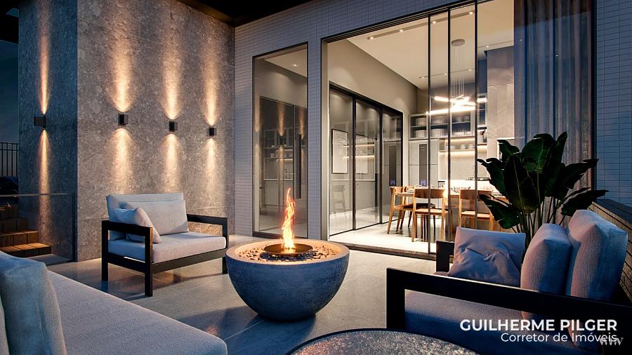 Apartamento com 125m² de área privativa, 03 suítes e 02 vagas de garagem, com churrasqueira à carvão na sacada.