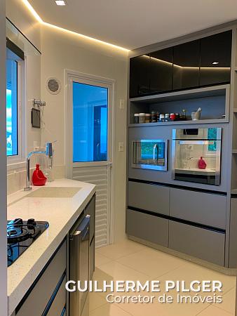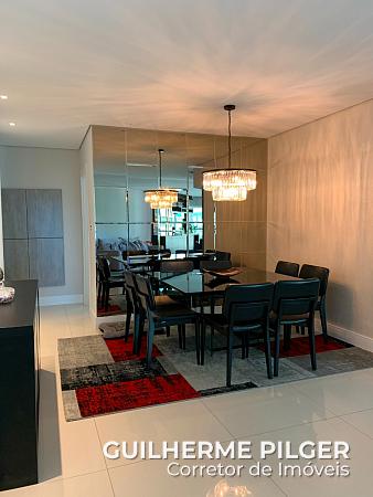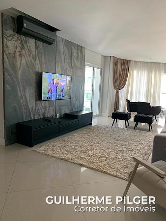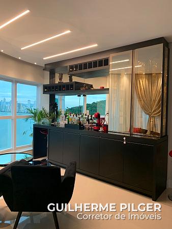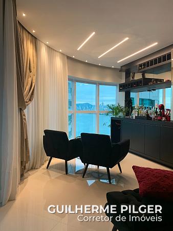 Apartamento com vista para o mar, mobiliado no Edifício Esquina Bella com 4 dormitórios, sendo 2 suítes e 2 demi suíte. Living com espaço gourmet, sala de estar e sala de jantar. Lavabo social, cozinha, lavanderia, sacada, sacada técnica. Todo mobiliado e decorado pronto para morar. 5 vagas de garagem, sendo uma vaga com espaço para até dois carros pequenos – equivale a 6 vagas no total.