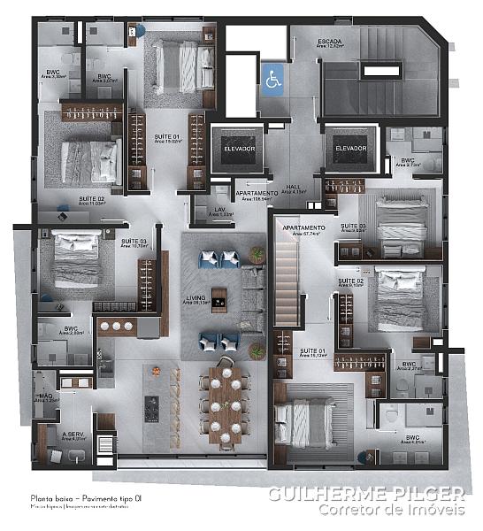 3 dormitórios (3 suítes)