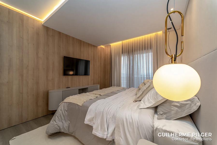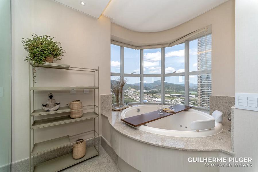 Apartamento de Luxo: Com 237 m² de área privativa, amplo living com sala de estar e jantar e cozinha aberta com vista para a orla de Balneário Camboriú. São 4 suítes, sendo a máster com 42 m², com closet e uma vista espetacular. Da sala de banho com hidromassagem, você pode contemplar o rio, e da cama, o deslumbrante cenário do mar. As outras três suítes, todas com 12 m², proporcionam equilíbrio e conforto para toda a família. Área de serviço, lavabo, dependência e 4 vagas de garagem.