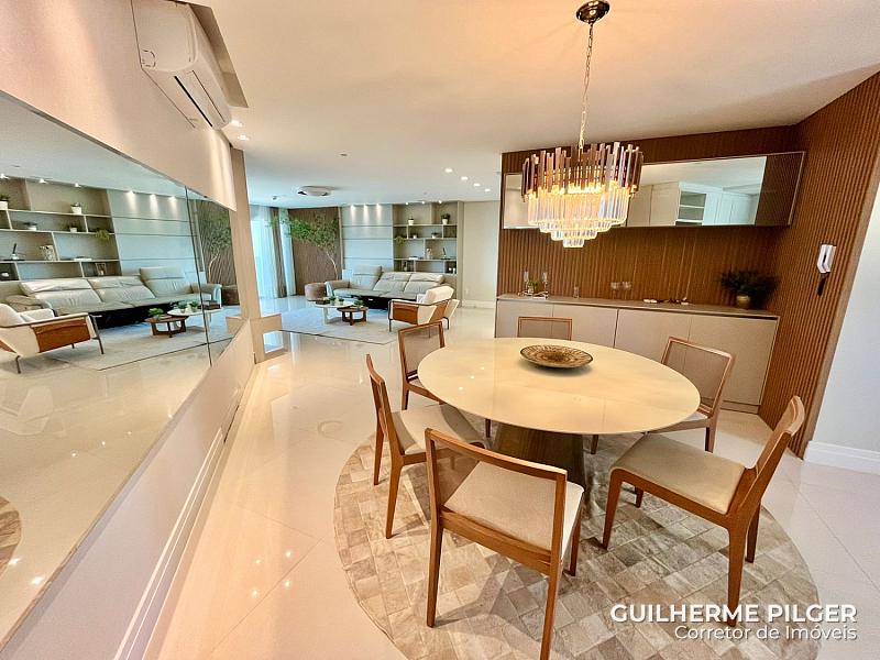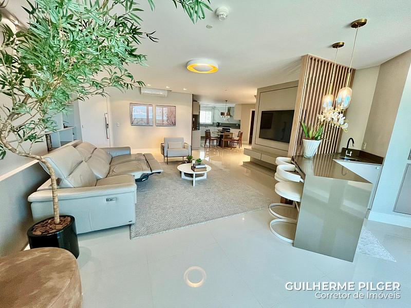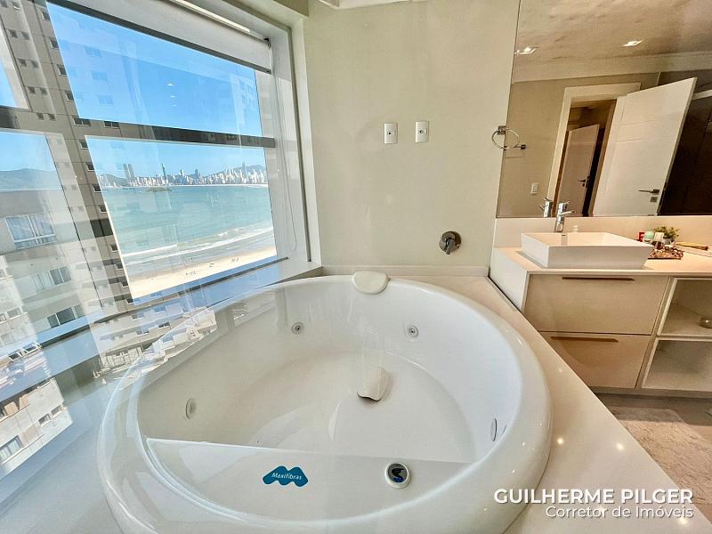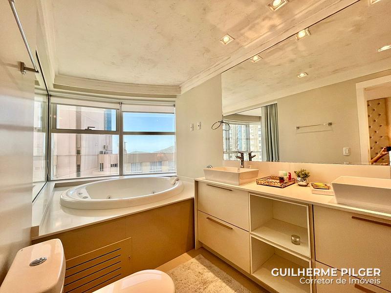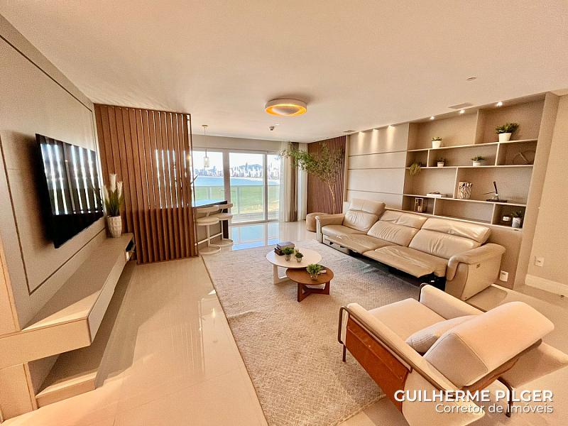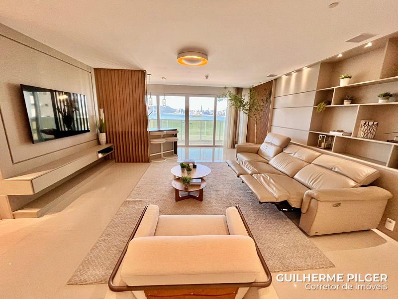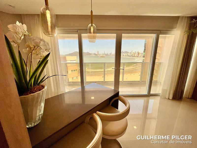 Apartamento mobiliado e decorado com vista panorâmica para a orla de Balneário Camboriú no Edifício Infinity Coast, com 164m², 4 dormitórios sendo 3 suítes, 5 vagas, hidromassagem, espaço gourmet com vista para o mar e com churrasqueira.