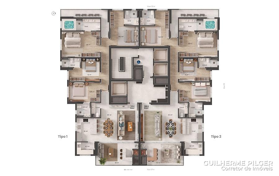 • Ampla área de lazer com mais de 1.500 m², incluindo piscina, spa, espaço gourmet e muito mais;