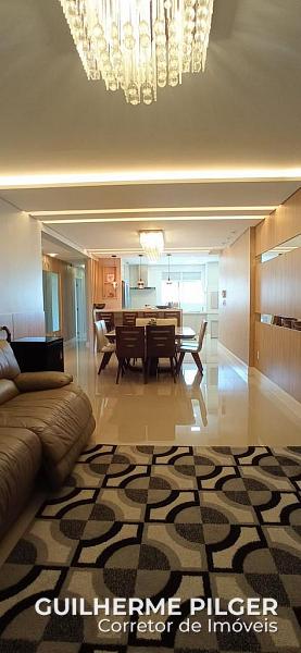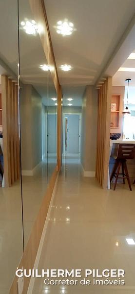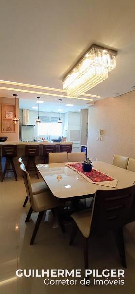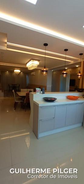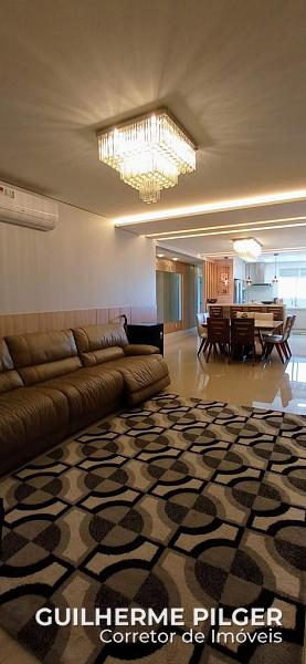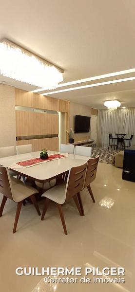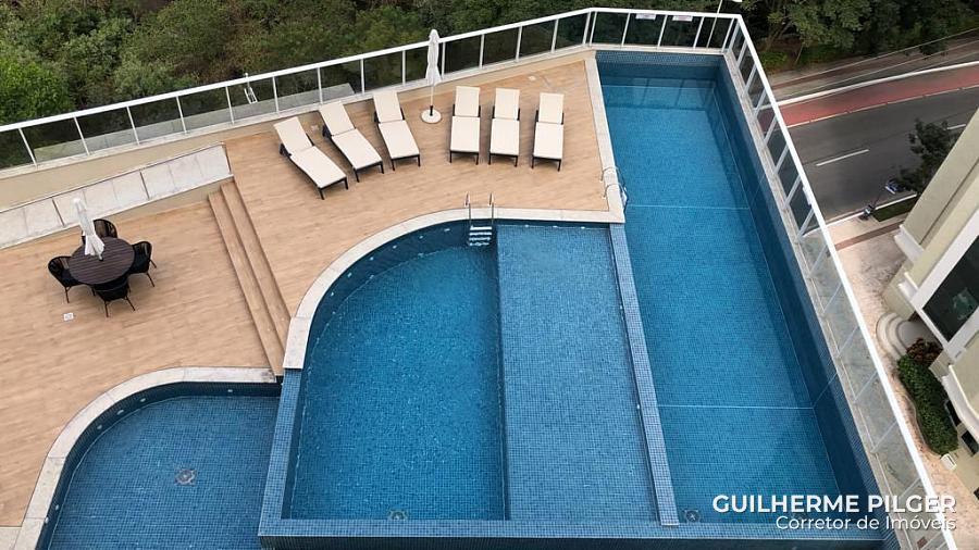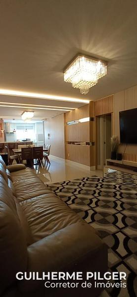 Apartamento no Edifício Mirante das Águas, com vista para o mar, mobiliado com 151m², 4 suítes, amplo living com sala de estar e sala de jantar, cozinha americana, churrasqueira à carvao, 3 vagas de garagem.