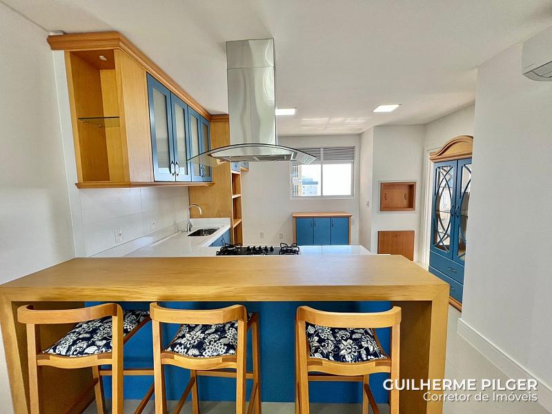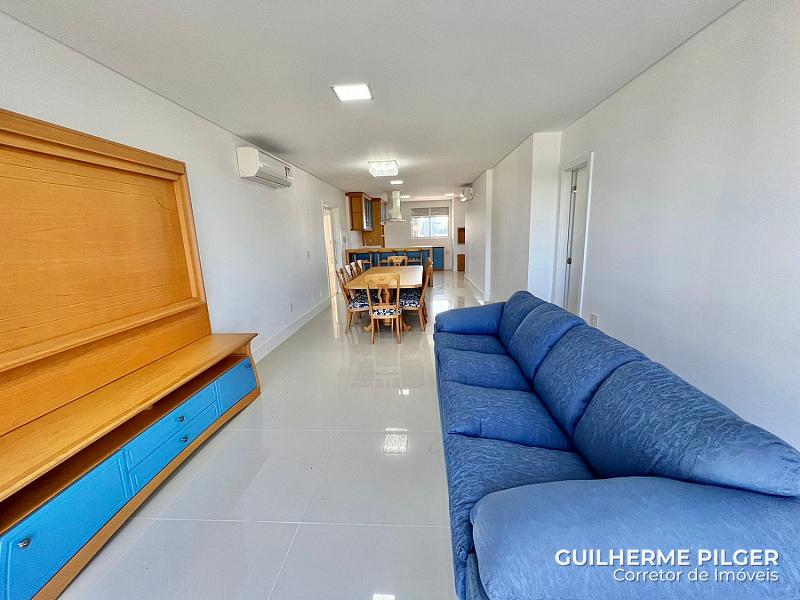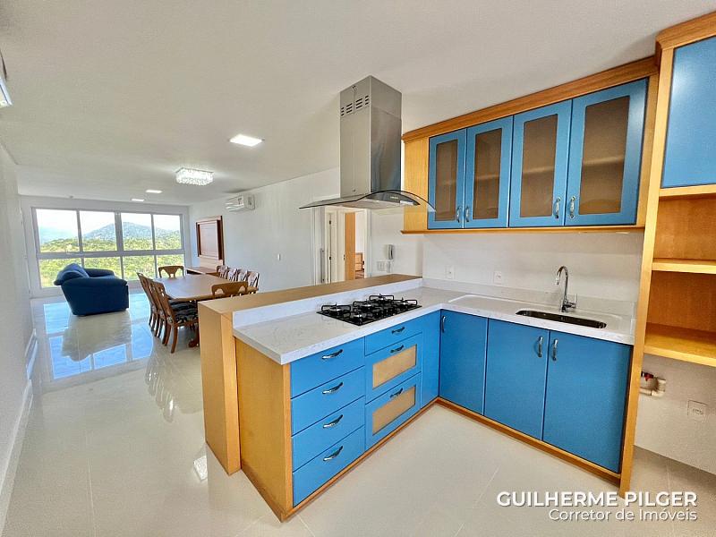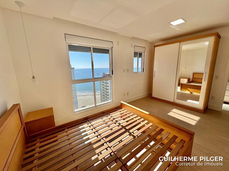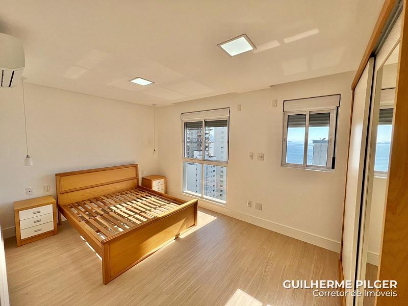 Apartamento no Edifício Mirante das Águas, com vista para o mar, semi mobiliado com 151m², 4 suítes, amplo living com sala de estar e sala de jantar, cozinha americana, churrasqueira à carvao, 3 vagas de garagem.