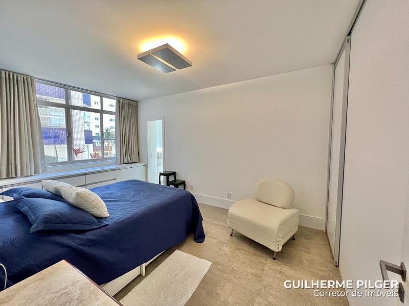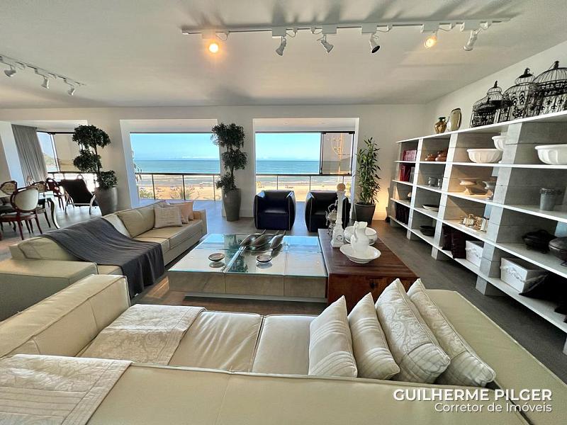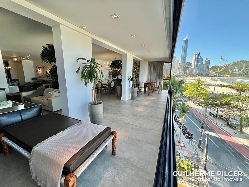 Apartamento de frete para o mar em Balneário Camboriú no Ed. Montreal, com 200m², ampla fachada de frente para o mar e living, 4 dormitórios sendo 3 suítes, churrasqueira à carvão, cozinha, 2 vagas de garagem.