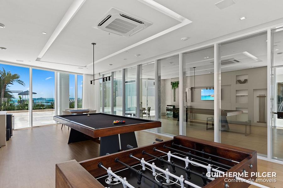 Esse apartamento de luxo conta com 194 m² de área privativa, sendo 4 suítes e duas dela voltadas de frente para o mar. Além das 4 suítes esse apartamento de alto padrão possui uma dependência de empregada, sala de estar e jantar integrada com a cozinha e espaço grill próximo a sacada fechada, lavabo.