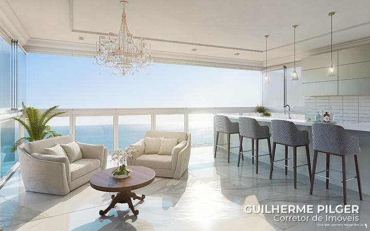 Um apartamento por andar de frente para a Avenida com vista frontal para o mar.