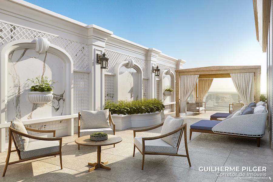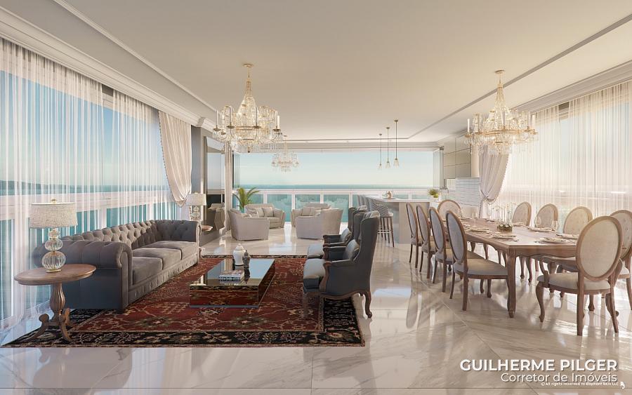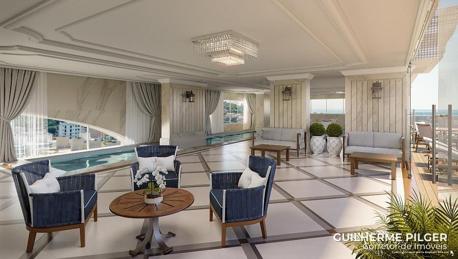 Apartamento no Edifício Palácio Triunfo em Itapema, com 240m², 04 suítes, 03 vagas, churrasqueira.