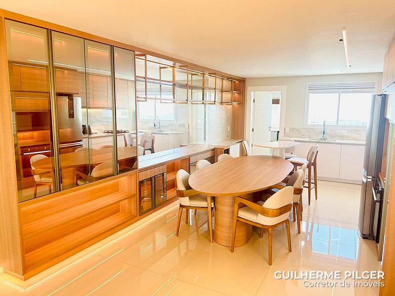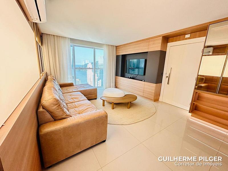 Apartamento no Edifício Phoenix Tower em Balneário Camboriú, com vista panorâmica, em andar alto, com mobília nova, 139m² de área privativa, 03 suítes, living com sala de estar, sala de jantar e cozinha americana, lavabo, área de serviço e 2 vagas de garagem.