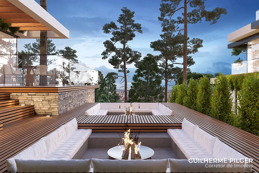 • Projeto com terraços escalonados – o primeiro de Gramado – com vista de tirar o fôlego para o Vale do Quilombo