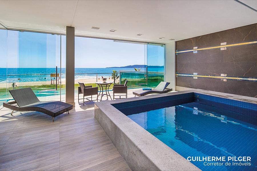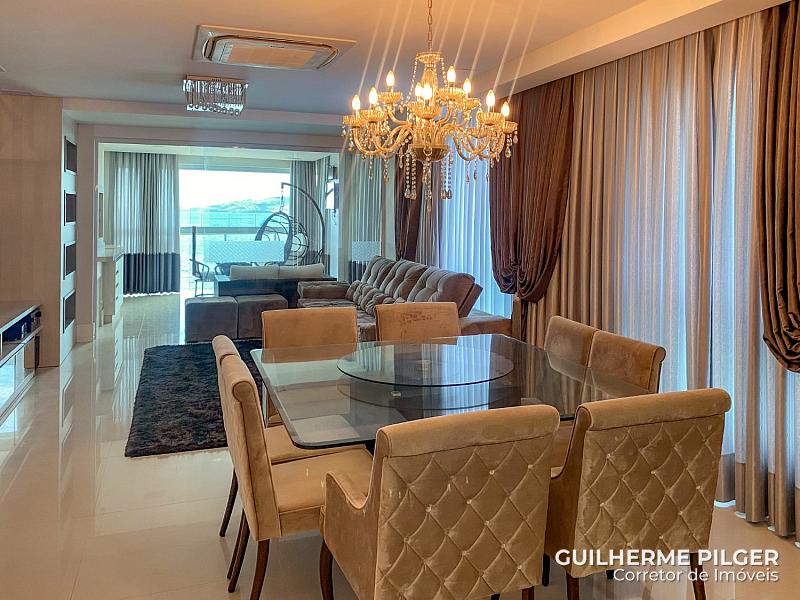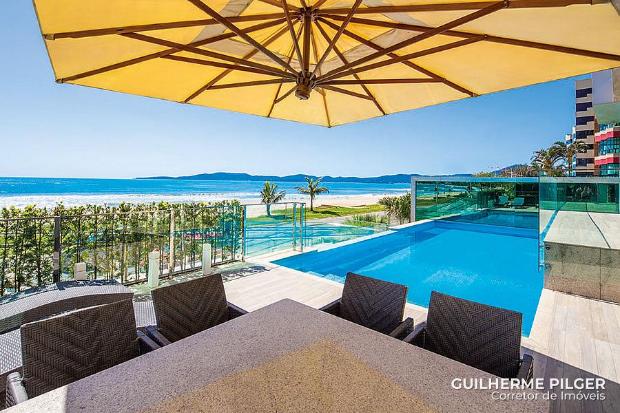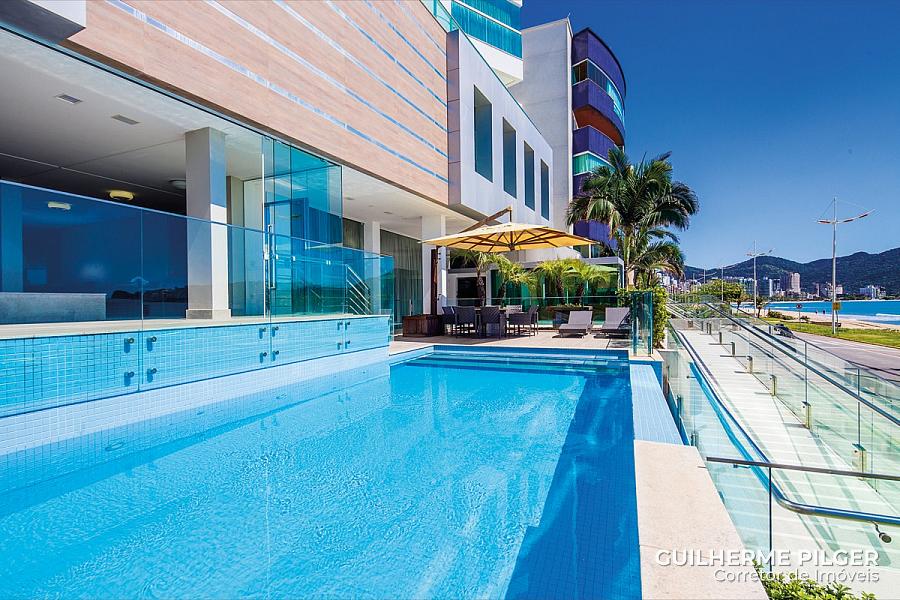 Apartamento de frente para o mar no Edifício Riviera del Sol em Meia Praia em Itapema, com 210m², 4 suítes, 4 vagas, varanda gourmet com churrasqueira.
