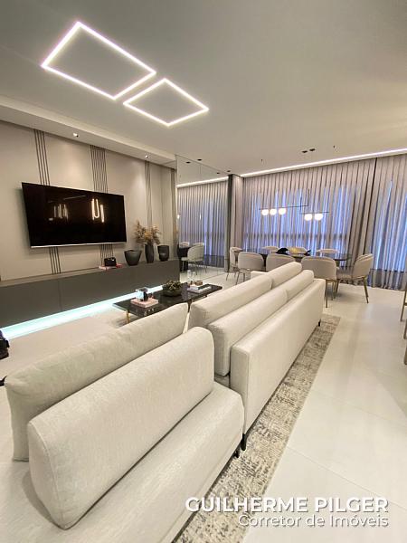 Apartamento mobiliado e decorado no Edifício Royal Tower Residence de 165m², com 04 suítes e 04 vagas de garagem, espaço gourmet com churrasqueira, com vista para o mar.