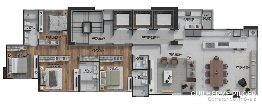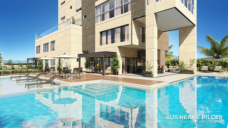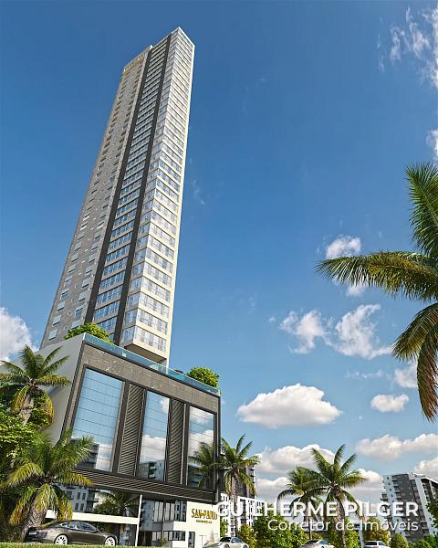 Apartamento no Edifício San Paolo Residenziale em Balneário Camboriú, com 165m², 4 dormitórios sendo 2 suítes e 2 demi, amplo living com sala de estar e jantar, sacada com churrasqueira à carvão, cozinha, área de serviço e 3 vagas de garagem.