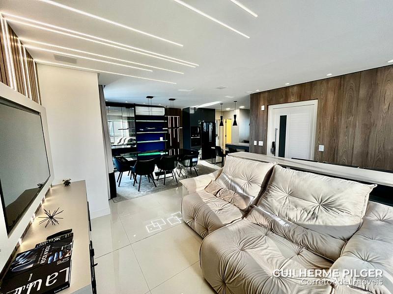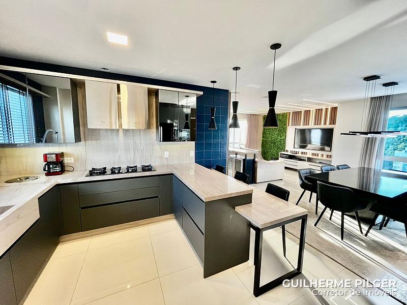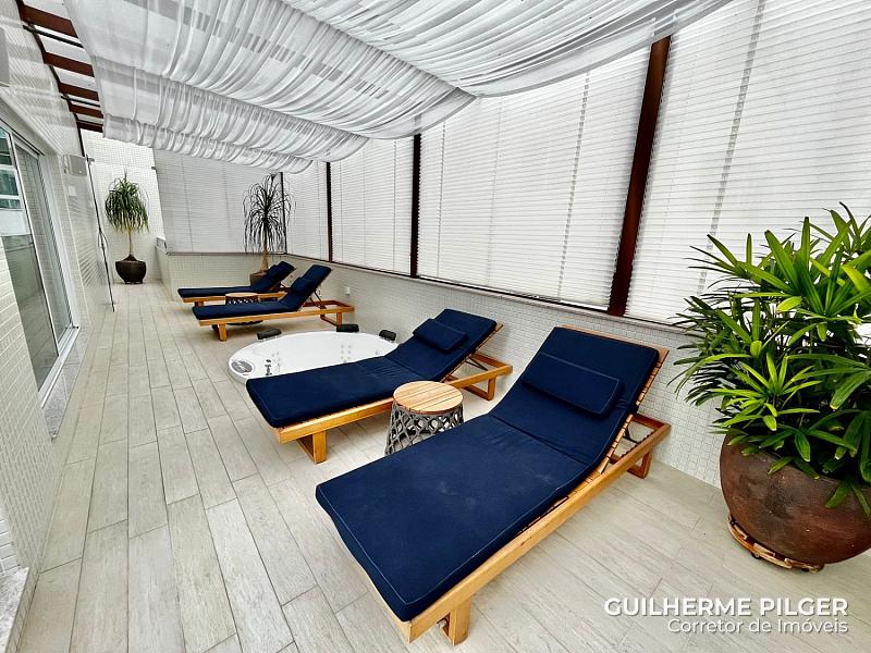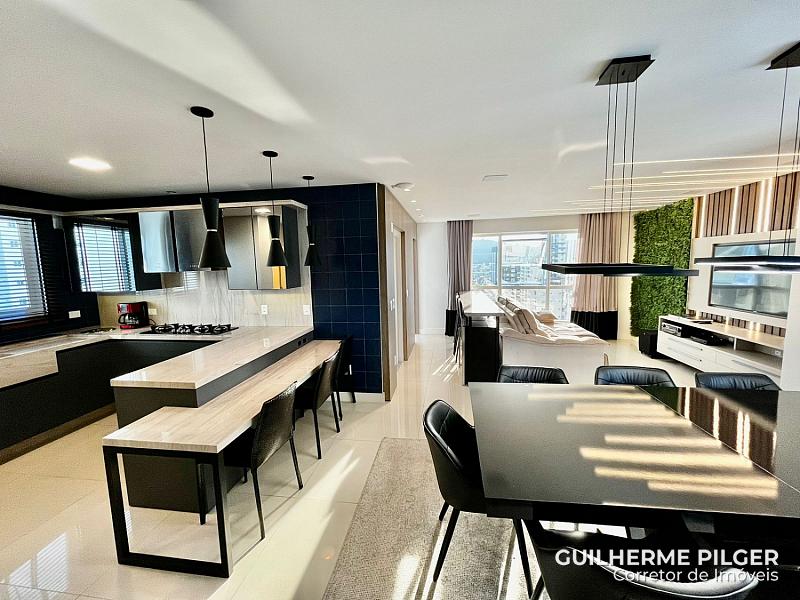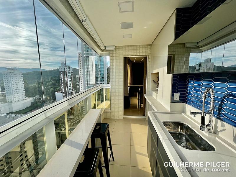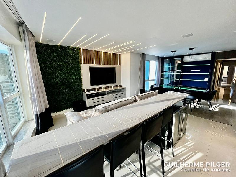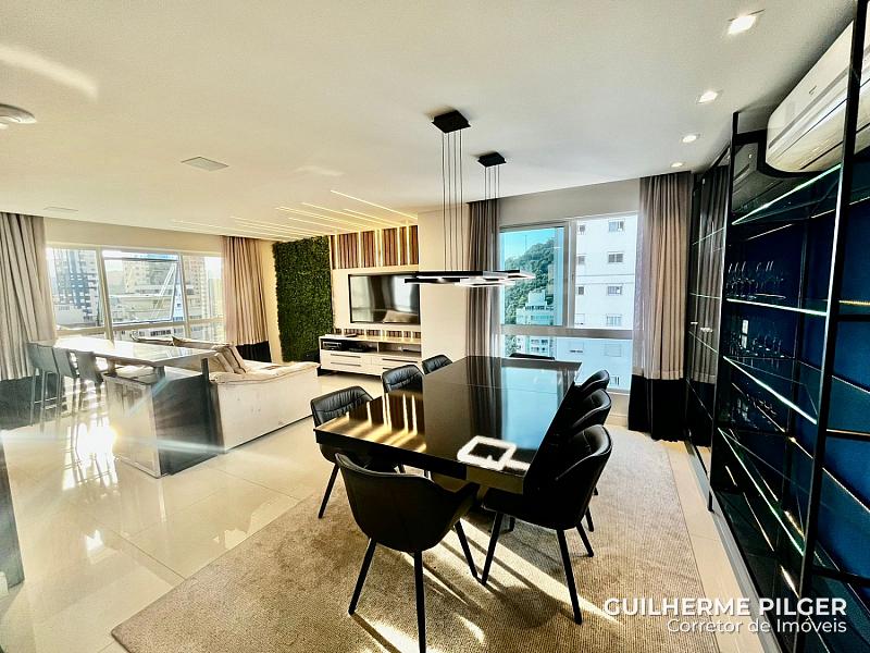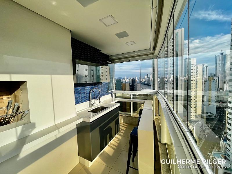 Apartamento no Edifício Solar Gonçalves na Barra Norte em Balneário Camboriú, mobiliado, com vista para o mar, com 158m², 3 dormitórios sendo 2 suítes, 1 delas suíte master com hidromassagem e closet, home office, sala para 2 ambientes, sala de estar e sala de jantar, cozinha americana, área de serviço, sacada com churrasqueira à carvão e vista para o mar.