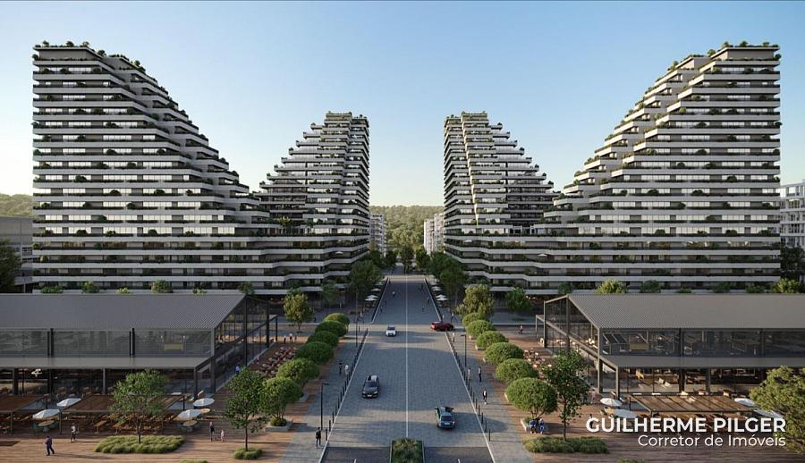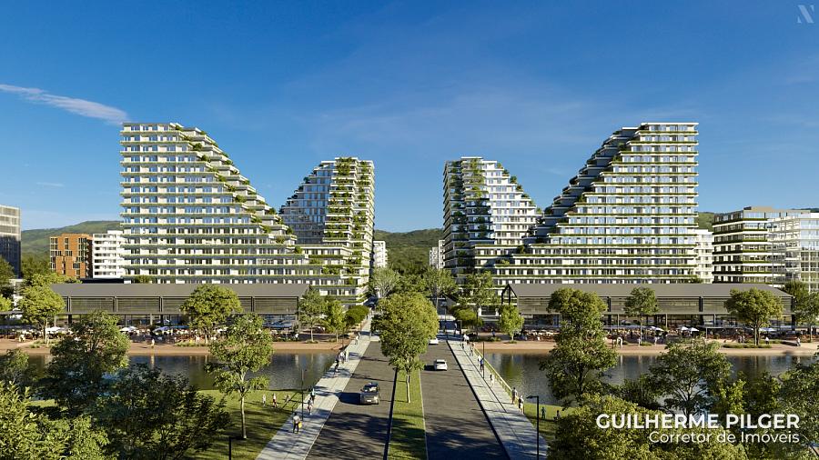 Apartamento no Edifício Vértice no VivaPark em Porto Belo, imóvel com 79,00m² privativos, 2 suítes + terraço, living integrado, cozinha integrada, e vagas de garagem.