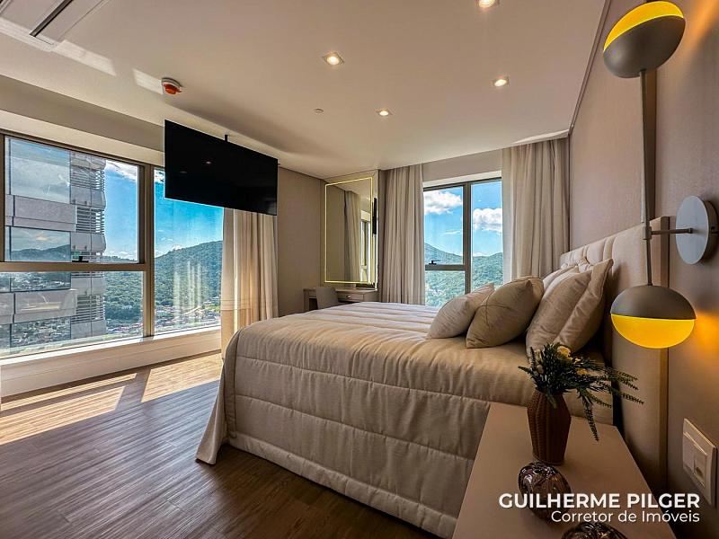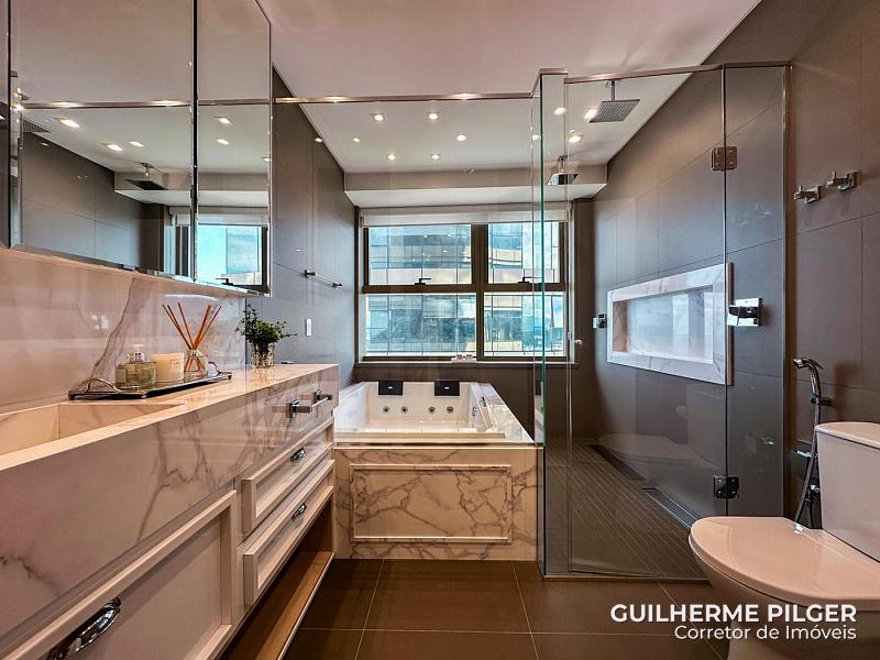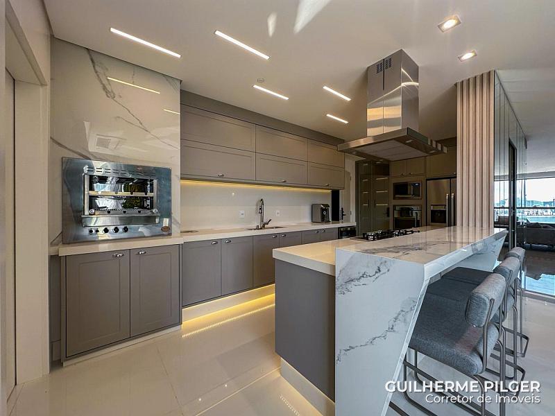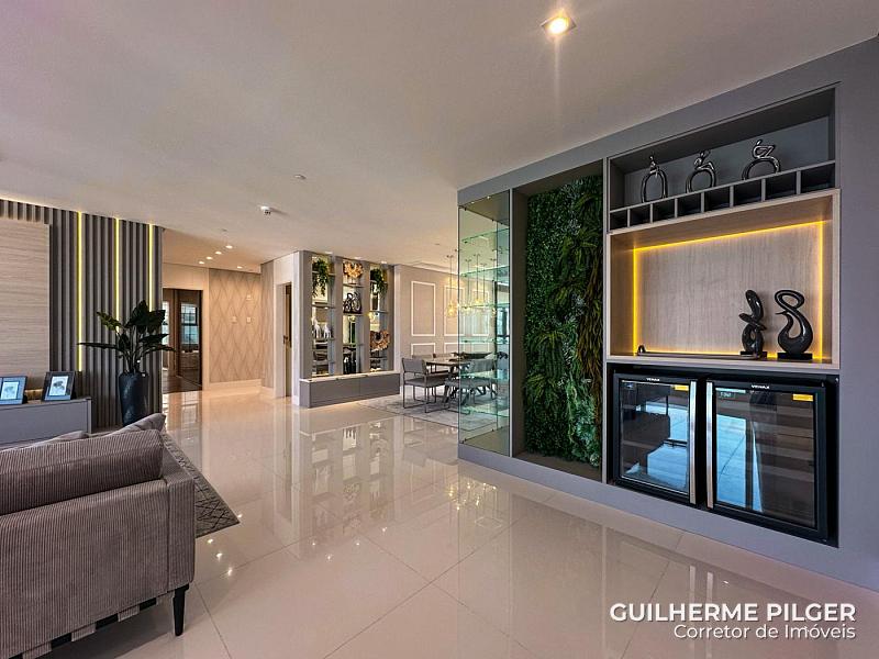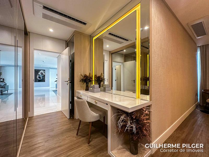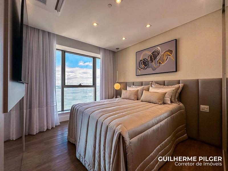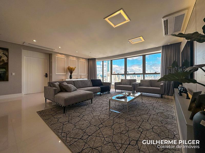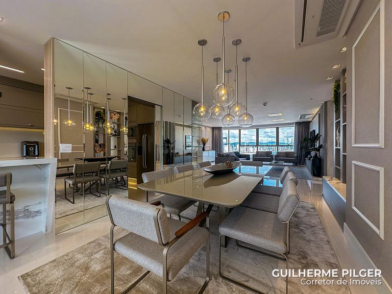 Apartamento no Edifício Yachthouse By Pininfarina em andar alto com vista para o mar, finamente mobiliado, com 265m², amplo living com sala de estar, sala de jantar, cozinha americana, 4 suítes, área de serviço, lavabo e 3 vagas de garagem.
