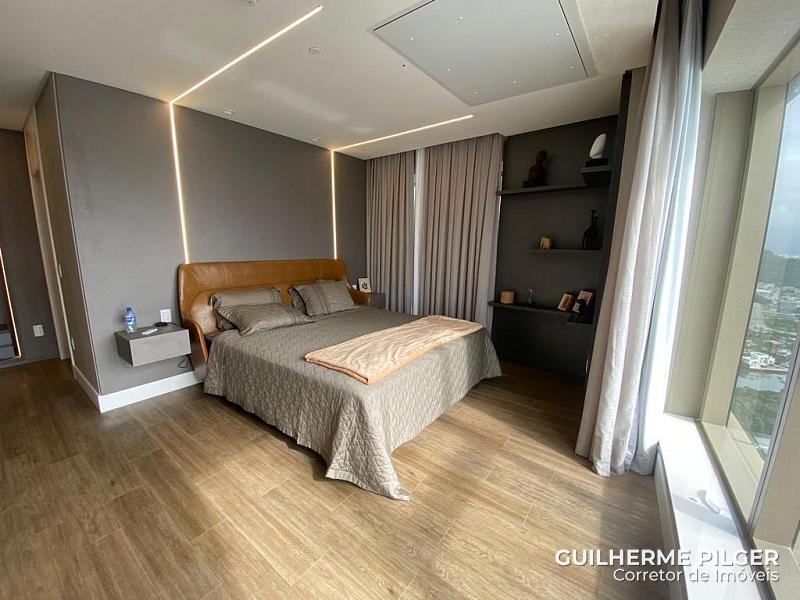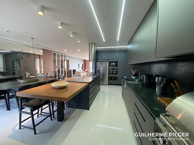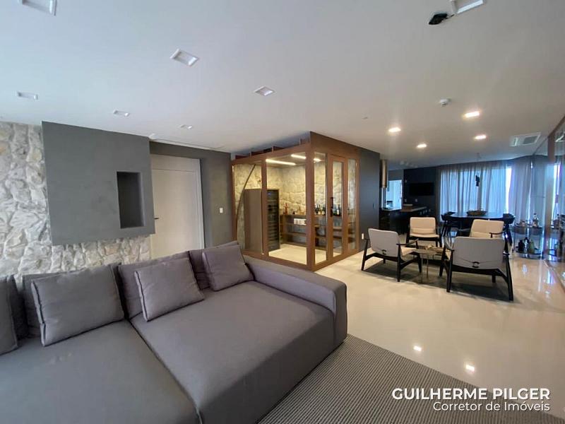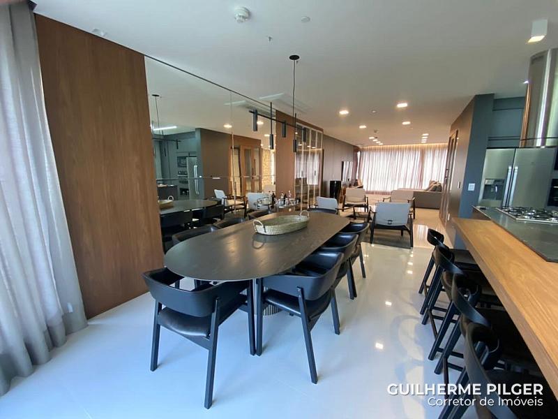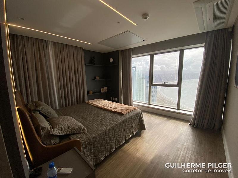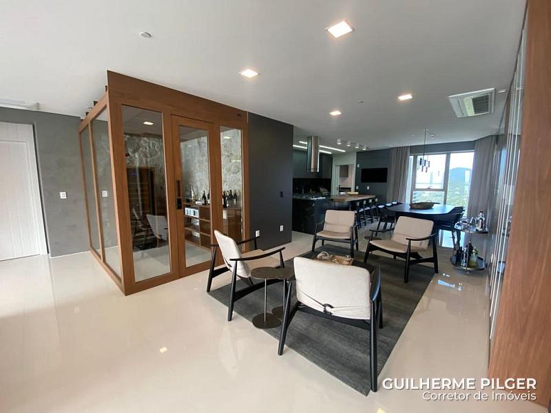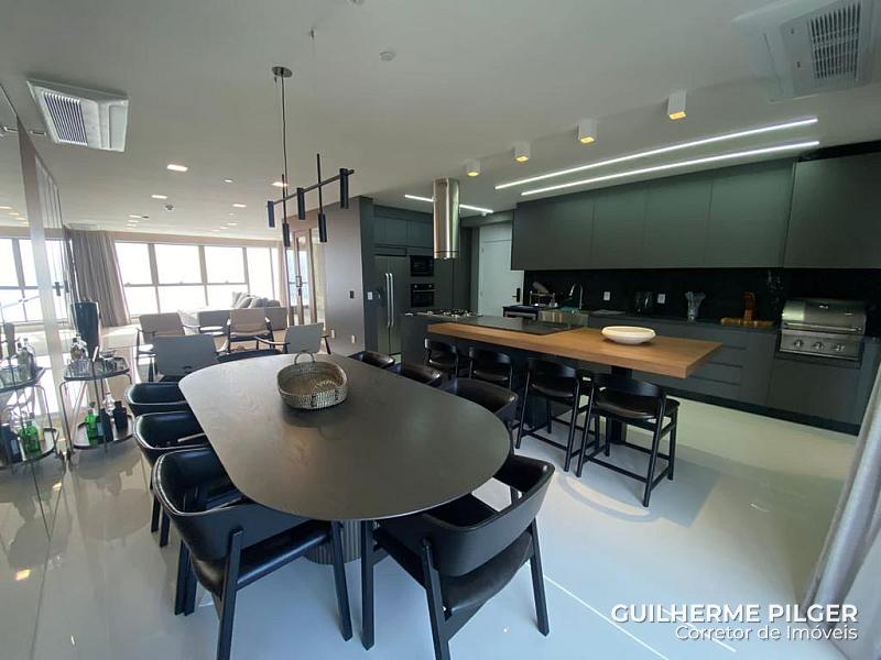 Apartamento no Edifício Yachthouse By Pininfarina em andar alto com vista para o mar, finamente mobiliado, com 265m², amplo living com sala de estar, sala de jantar, cozinha americana, 4 suítes, área de serviço, lavabo e 3 vagas de garagem.