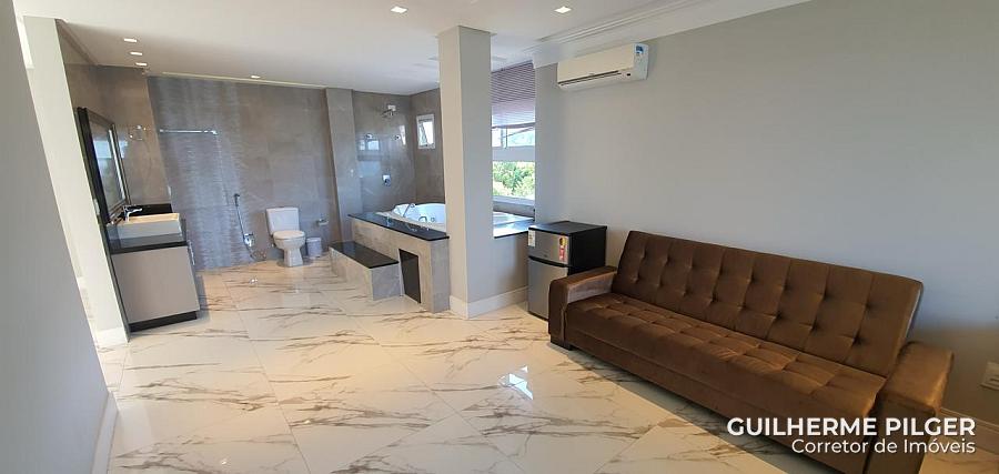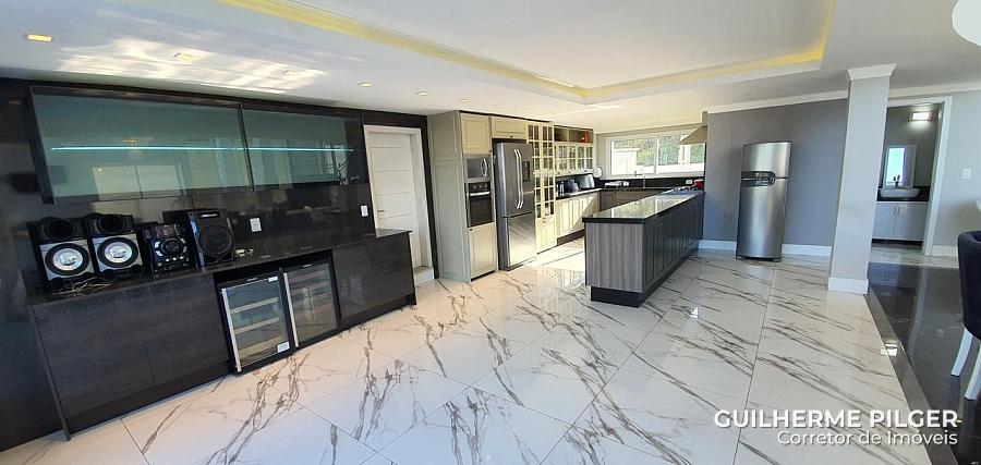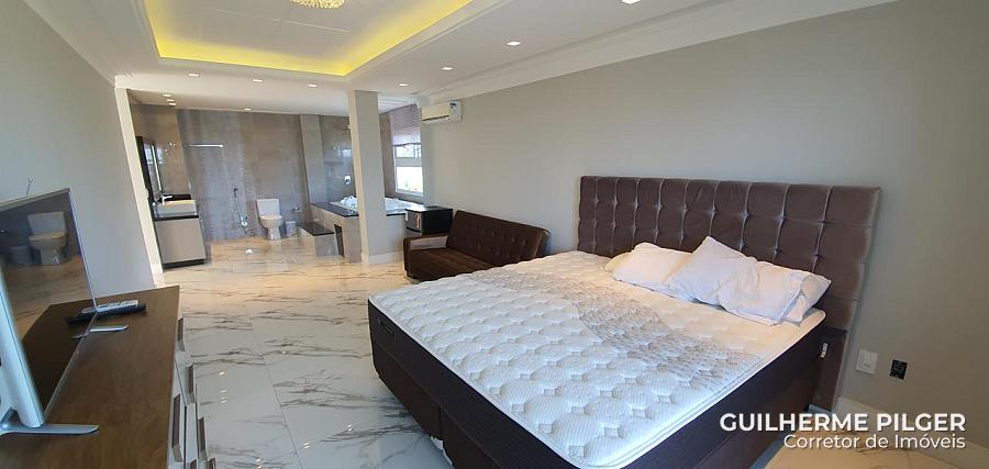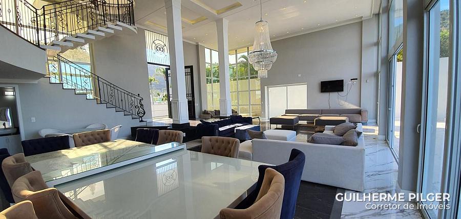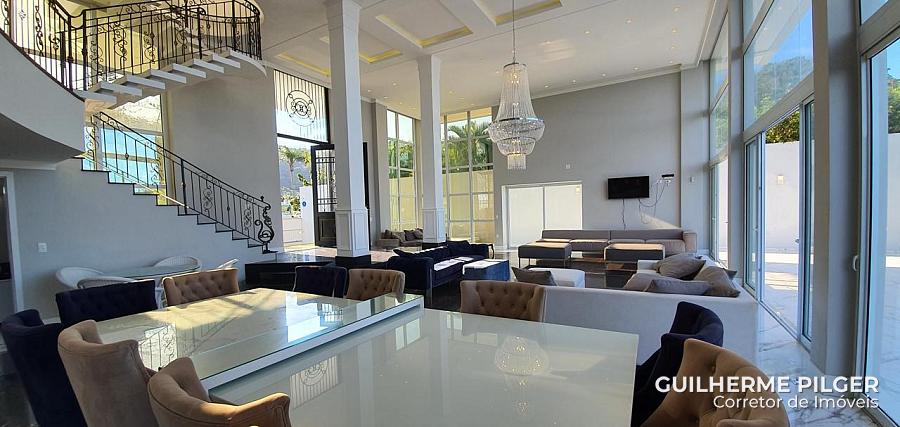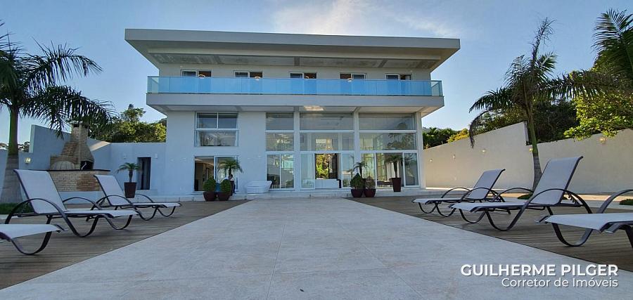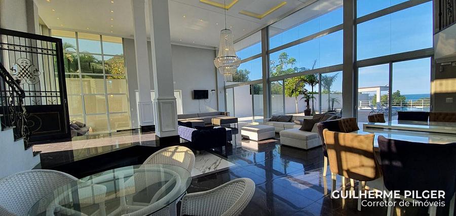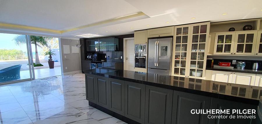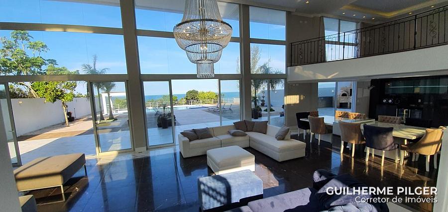 Localizada de frente para o mar na Praia do Estaleirinho em Balneário Camboriú essa casa de alto padrão possui 1100 m², 6 suítes, ampla sala de estar e jantar integradas com pé direito duplo integrado com a cozinha, sala de estar íntimo, área de serviço, dependência auxiliar, espaço gourmet com churrasqueira, piscina com prainha e bar, vaga para 5 carros, terreno com 1422 m².
