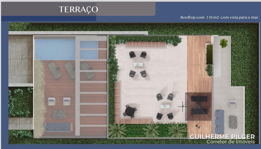 Rooftop de 110m² com vista panorâmica para o mar – o espaço ideal para relaxar ou receber convidados.