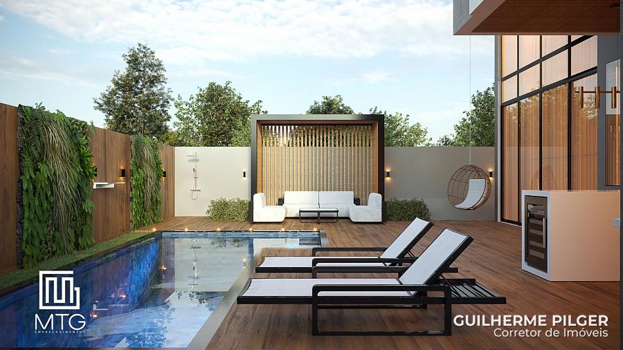 Casa no Condomínio Caledônia em Camboriú, com 316m² de área construída, 03 suítes, 02 vagas de garagem, piscina privativa.