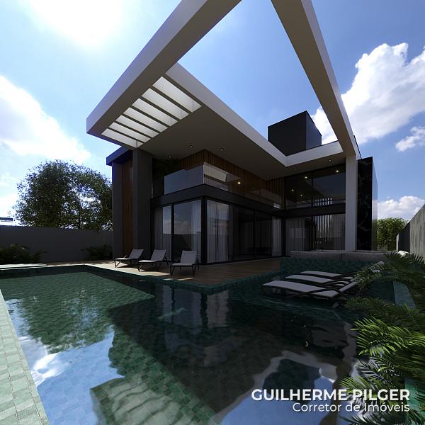 A casa possui 339,73m² de área construída, em um terreno de 360m², com arquitetura moderna e dois pavimentos, 04 suítes sendo 01 master com banheira, amplo living, sala de estar, sala de jantar, cozinha, churrasqueira, 1 lavabo, garagem para 02 carros cobertos e 02 descobertos, área de serviço, piscina, espaço fogo e jardim.