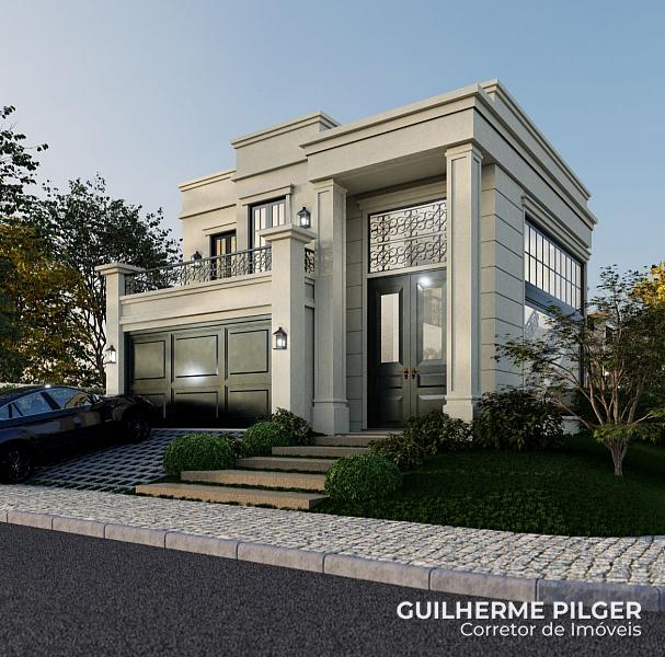 A casa possui 394,30m² de área construída, em um terreno de 360m², com arquitetura clássica e dois pavimentos, 04 suítes sendo 01 master com banheira, amplo living, sala de estar, sala de jantar, cozinha, churrasqueira, 1 lavabo, garagem para 02 carros cobertos e 02 descobertos, área de serviço, piscina, espaço fogo e jardim.