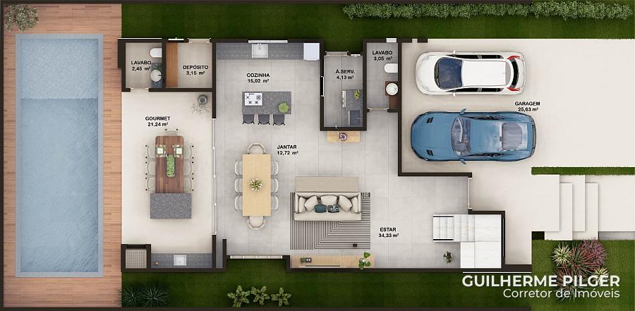 Uma residência única, projetada para quem busca conforto, inovação e sustentabilidade. Com 330,88 m² de área construída, este projeto alia design sofisticado a soluções inteligentes para o seu dia a dia.
