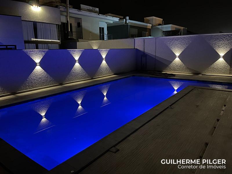 Casa no Condomínio Caledônia Private Village em Camboriú, 356m² de área construída, 360m² de terreno, 3 suítes sendo 2 master com closet,  cozinha, sala de estar e jantar, espaço gourmet com churrasqueira à carvão e piscina, área de serviço, calefador de lenha, sistema de aspirador de pócentral, tomada para carro elétrico, 2 vagas de garagem.