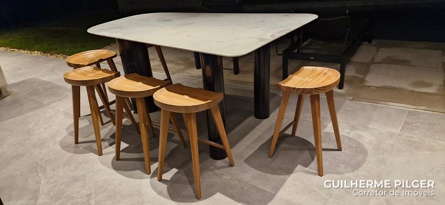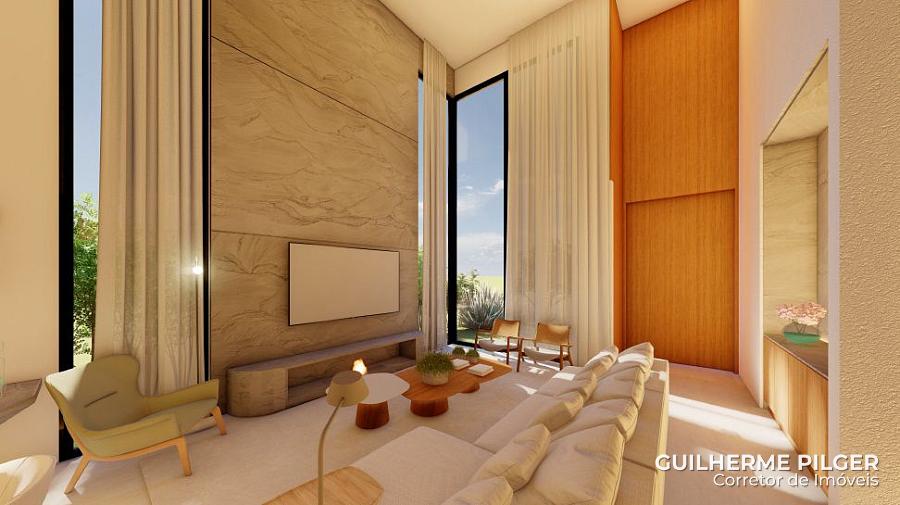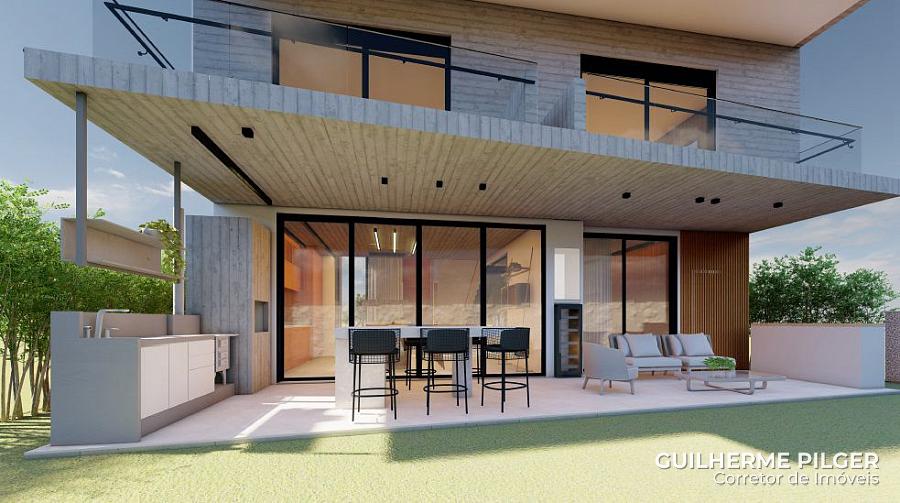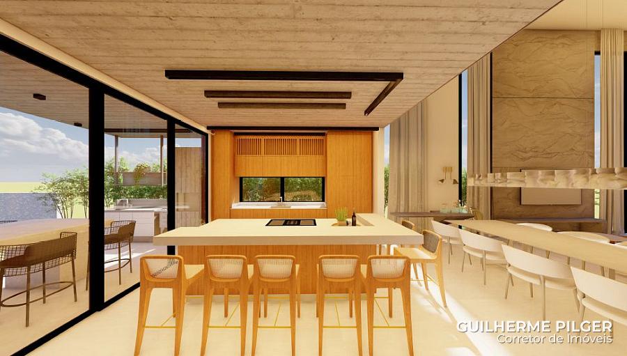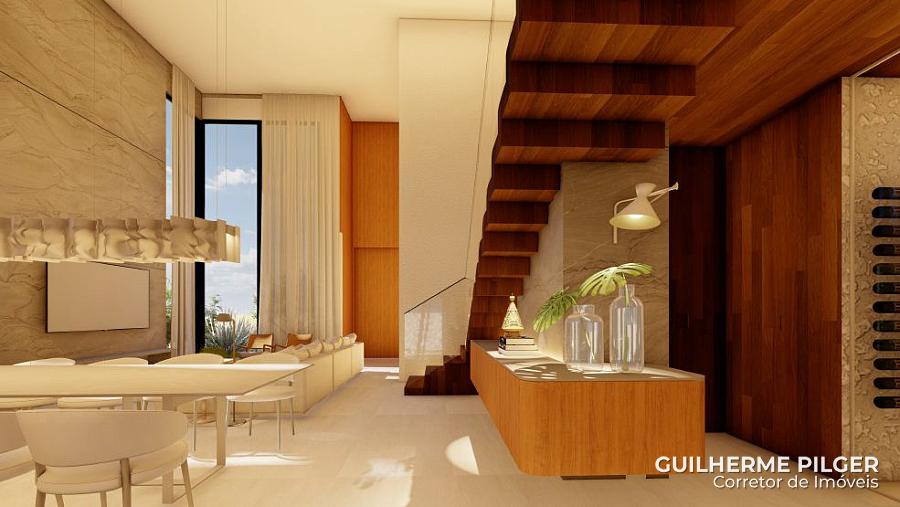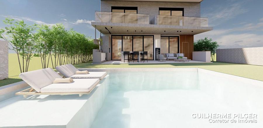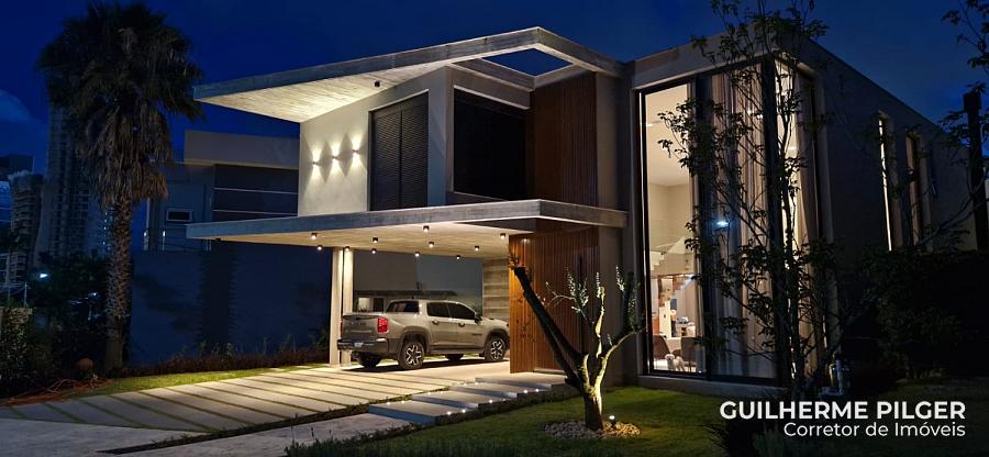 Casa com 474m² construídos, terreno com 450m², 2 pavimentos, pé direito duplo, 4 suítes, sendo 1 suíte master com closet, amplo living integrado com a cozinha, lareira, adega,  piscina aquecida com espaço gourmet com churrasqueira, e 2 vagas cobertas + 2 na rampa.