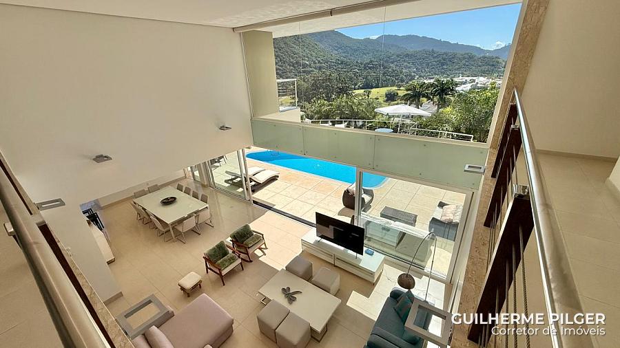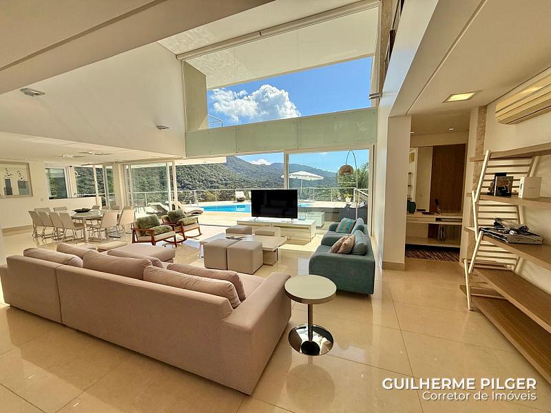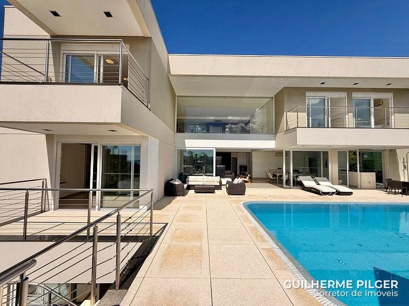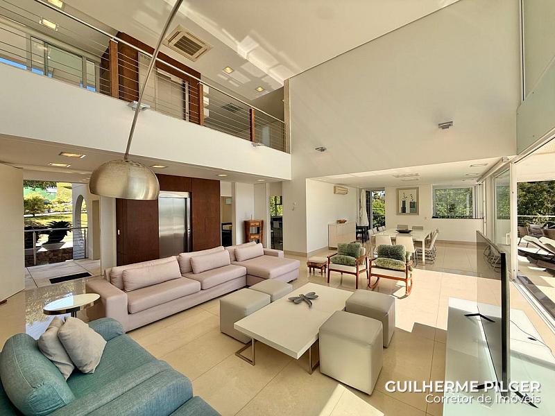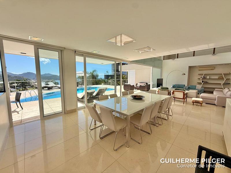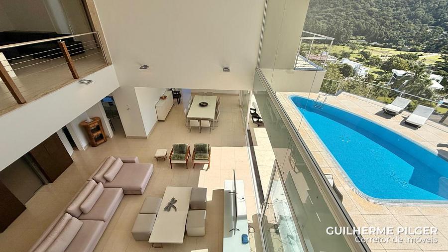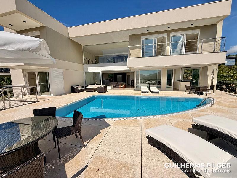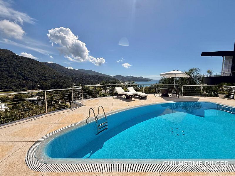 Uma residência imponente, com aproximadamente 1.000 m², projetada para quem busca sofisticação, privacidade e uma vista privilegiada para o mar dentro de um dos condomínios mais exclusivos da região.