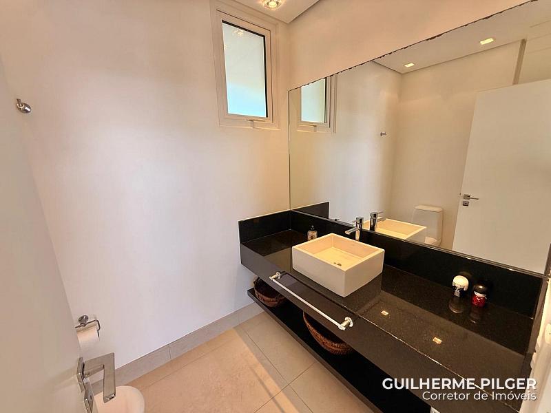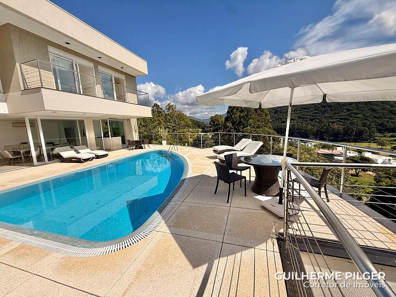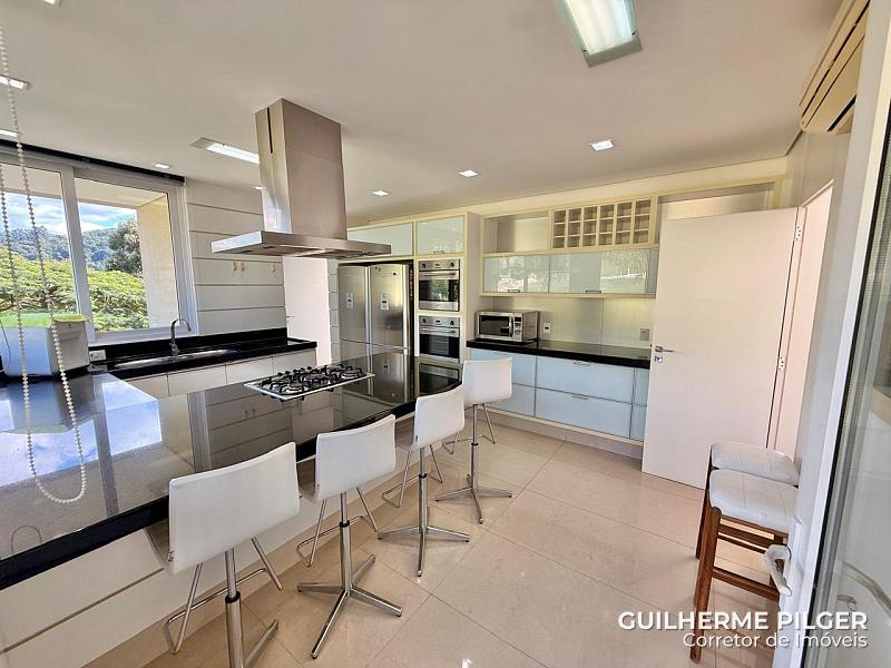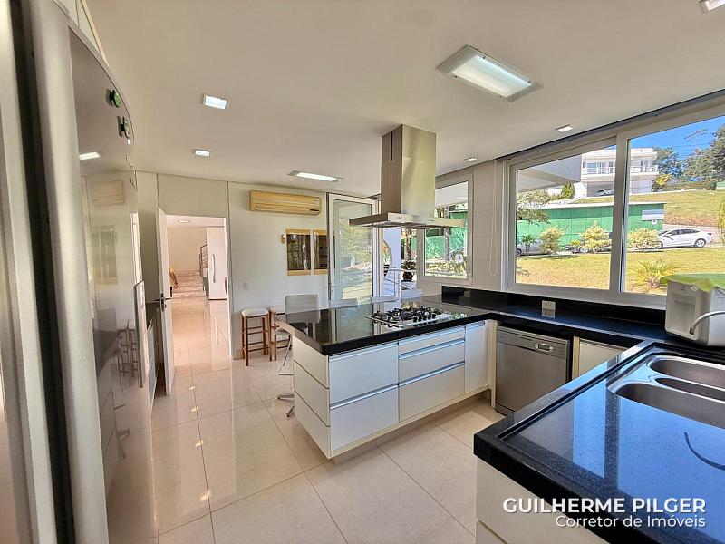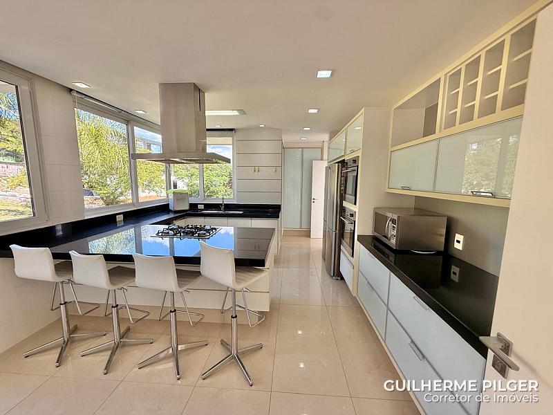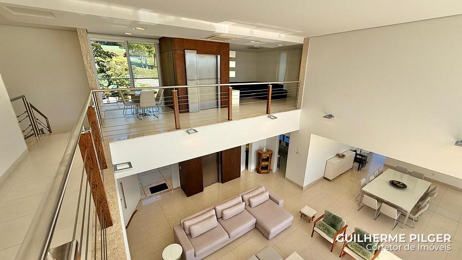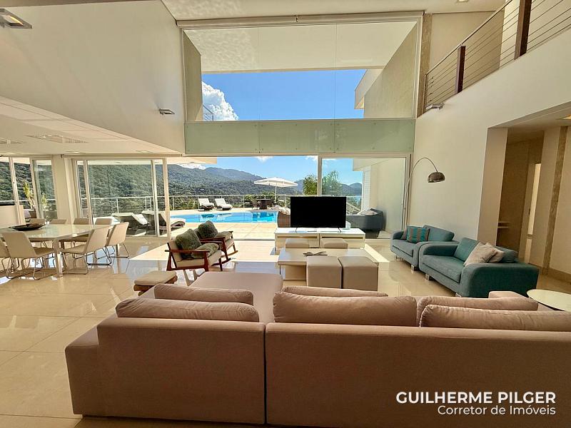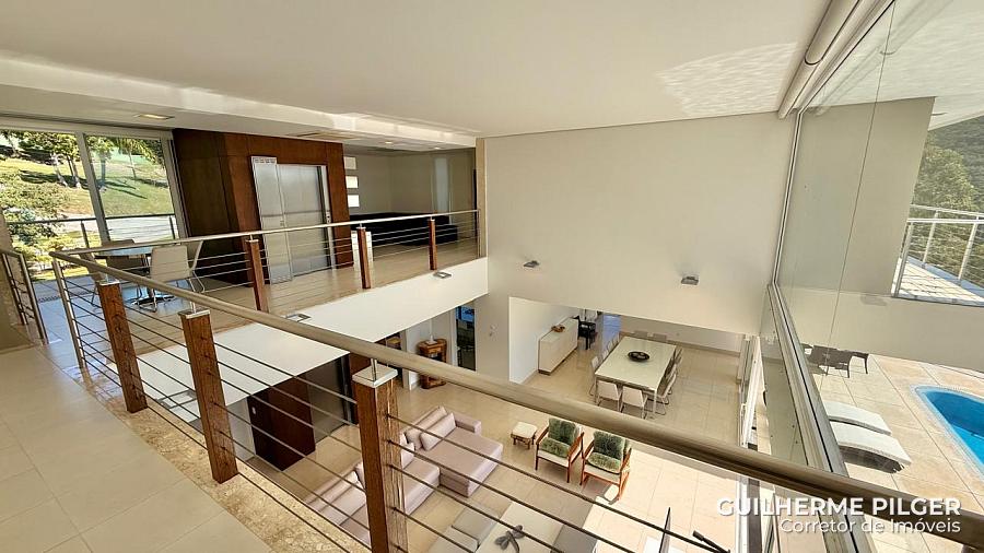 Uma residência imponente, com aproximadamente 1.000 m², projetada para quem busca sofisticação, privacidade e uma vista privilegiada para o mar dentro de um dos condomínios mais exclusivos da região.