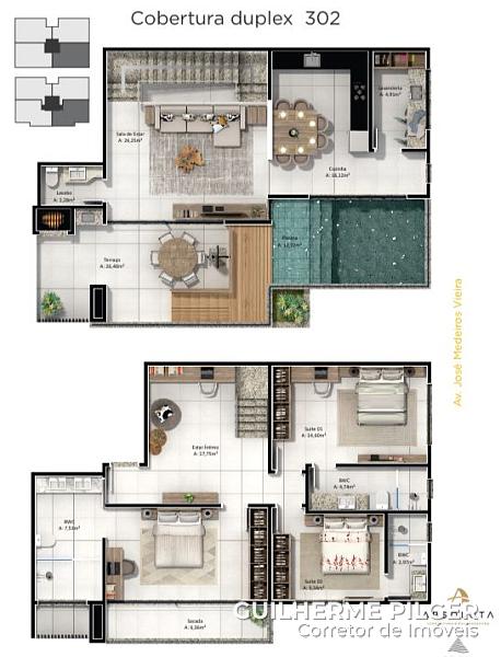 Cobertura no Edifício Brava Center Residence na Praia Brava, a 60 metros do mar, com 186m², 3 suítes, 4 garagens.