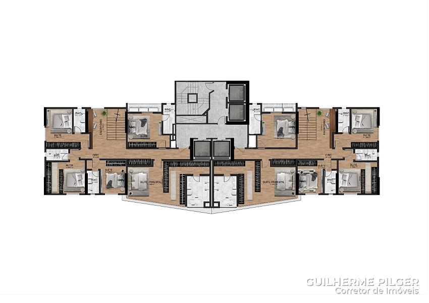 • Revestimento de Porcelanato na Área Social e Vinílico na Área Íntima dos Apartamentos