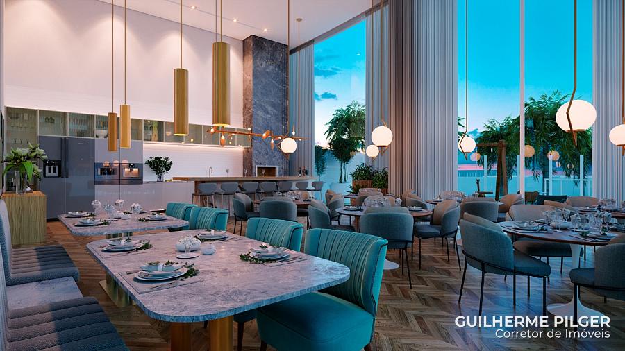 Cobertura duplex com vista panorâmica para o mar no Condomínio Reserva Figueira - torre Jatobá na Praia Brava em Itajaí, com 411m², 04 suítes e 04 vagas de garagem, piscina privativa e churrasqueira à carvão.