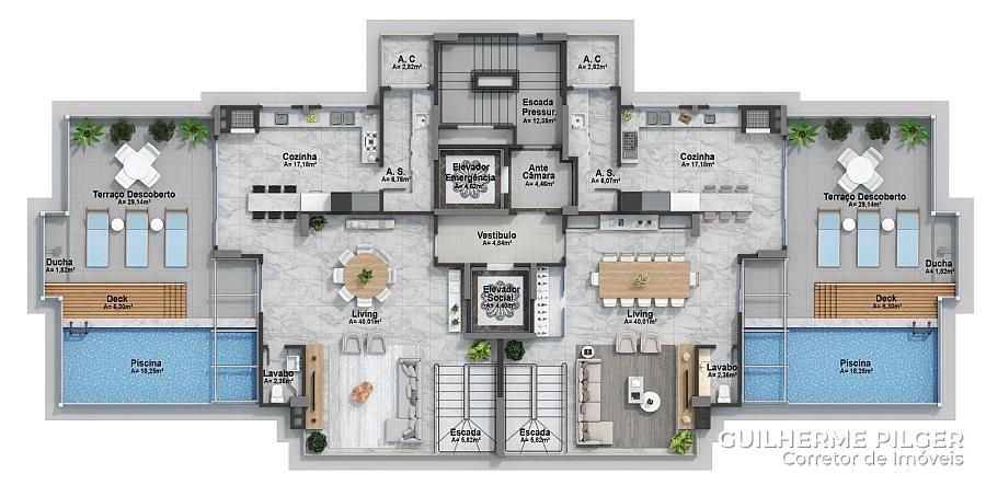 • Amplo terraço com piscina privativa, proporcionando uma vista deslumbrante de Balneário Camboriú e o mar.