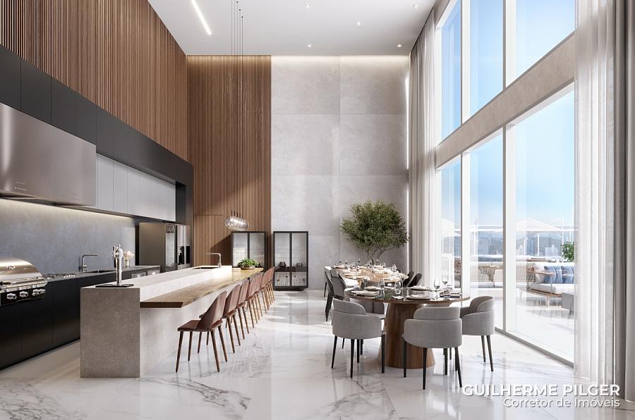 Cobertura duplex de 298,21m² de área privativa com vista panorêmica e para o mar,  4 suítes, 4 vagas de garagem, piscina privativa, amplo living, espaço gourmet com churrasqueira à carvão.