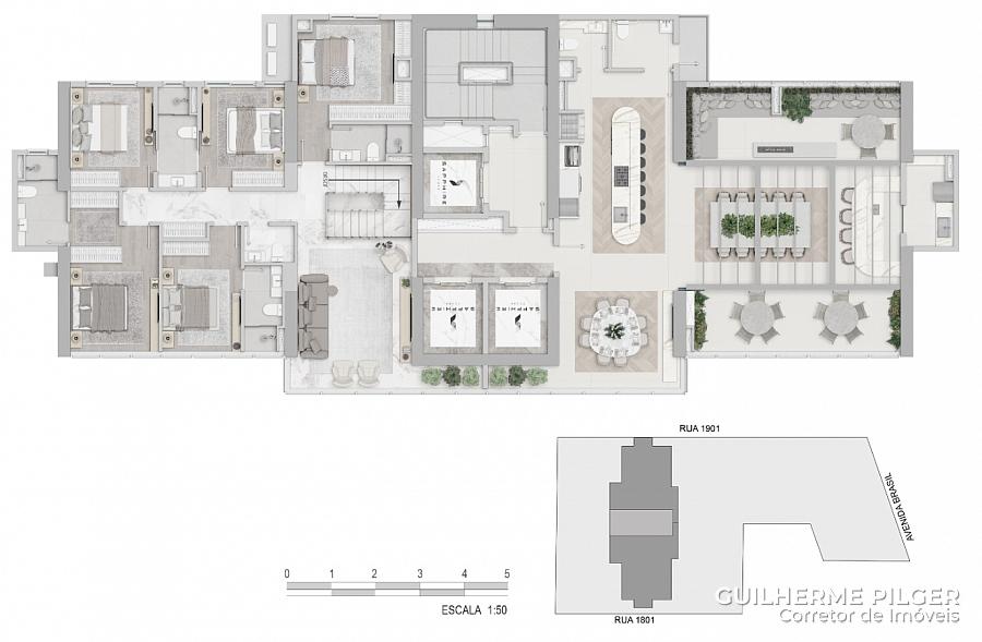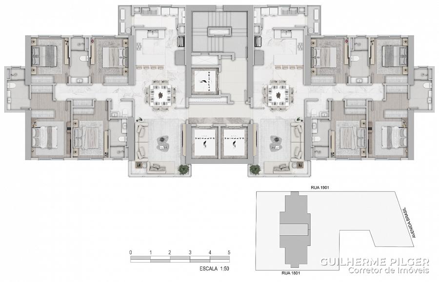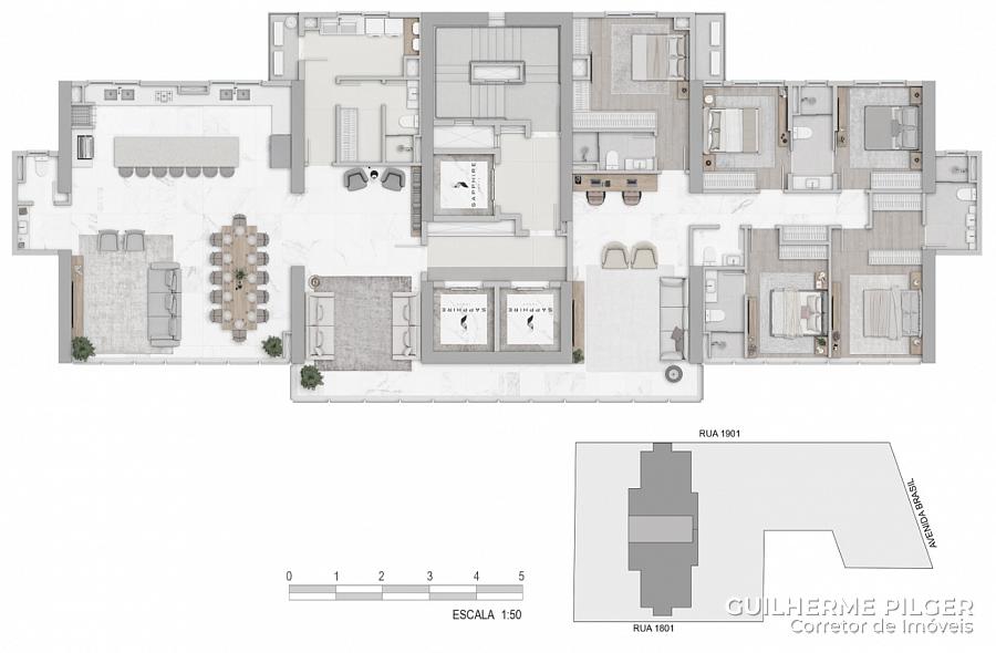 Cobertura duplex do Edifício Sapphire da FG Empreendimentos, localizado na Avenida Brasil na Barra Norte de Balneário Camboriú, a poucos metros do mar.