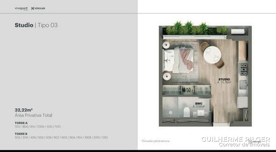 Studio à Venda no Edifício Vértice – Viva Park Porto Belo